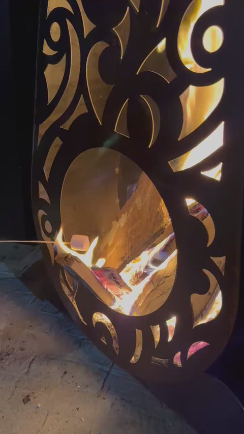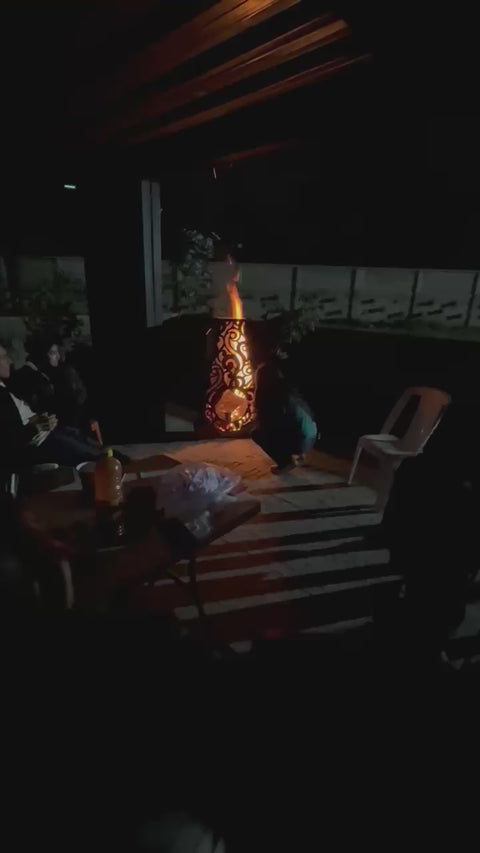 Su presencia estilizada no solo aporta calidez, sino también un toque escultural que realza cualquier espacio exterior. Perfecto para quienes buscan una fogata con un carácter original y sofisticado.