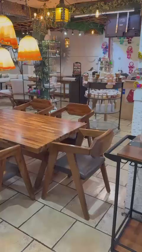 ✨ El Comedor Sayulita con seis sillas Bernal combina diseño y comodidad en una sola pieza. Su cubierta en listonado de madera parota aporta un estilo cálido y dinámico, mientras que las sillas también de parota, con respaldo curvo y asiento tapizado en piel vegana, ofrecen el equilibrio perfecto entre confort y sofisticación. Además, puedes personalizar las sillas eligiendo entre nuestra variedad de telas de interior y, si lo deseas, también cotizar un tamaño más grande de comedor para adaptarlo mejor a tu espacio. 🌿🍷
